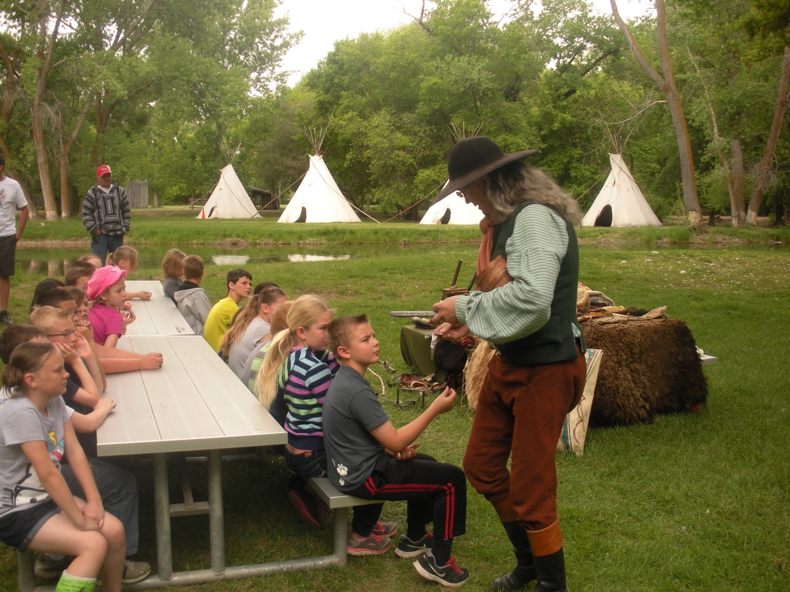 Nick always seems to be the one available to go on field trips and I am jealous he got to go to the 4th grade rendezvous at Fort Buenaventura this year. It sounded like so much fun! Nick was in charge of loading kids into the canoes where they could row across a pond. They also did a tug-of-war, watched a mountain man load a black-powder rifle, participated in a hatchet throw, shot taffy out of a cannon, and ate fry bread. How cool is that? This was a perfect field trip for a dad to go on though. I can't wait until Brielle gets to go and hopefully Nick can go again.